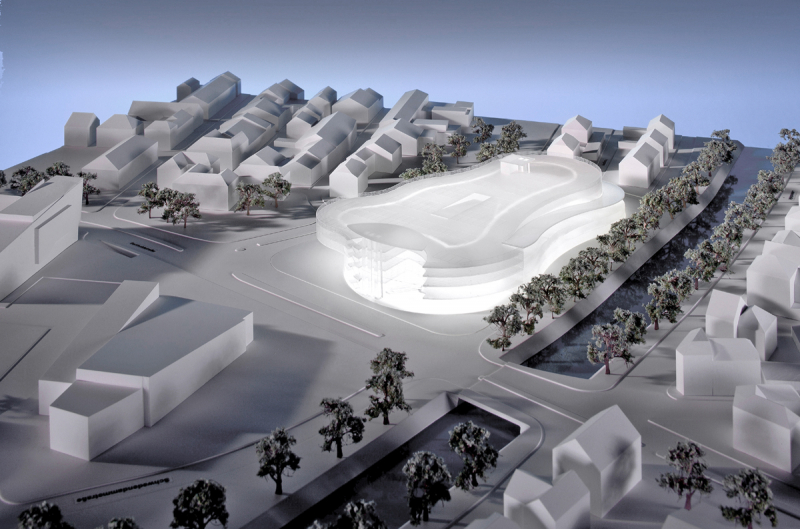 Der Haupteingang liegt im städtebaulichen Kontext zur Innenstadt an der Ecke Bertholdstrasse und Kaiserring. Die Fassade zeigt sich als geschwungene abgerundete Struktur und erzeugt durch die transluzente Materialität Leichtigkeit und Offenheit. Durch die monochrome Art der transparenten Fassadenstrukturen werden sowohl die Verkaufsgeschosse als auch die darüber liegenden Parkierungsebenen gestalterisch zu einer Einheit zusammengefasst, sind entsprechend gut gegliedert und geben dem Baukörper die richtigen Proportionen. Der Baukörper, die Baumasse und die Gebäudehöhe fügen sich harmonisch in die städtebauliche Situation ein. Im Entwurfsansatz wurde versucht, den Baukörper und die Gebäudehöhe nicht über das Maß der bereits früher für diesen Standort genehmigten Morrison-Planung zu entwickeln. Über den Verkaufsgeschossen befinden sich noch 2 Parkierungsebenen, die über eine großzügige und lang gezogene Rampenanlage staufrei und bequem für den Fahrverkehr erschlossen werden. Zufahrt und Anlieferung erfolgen über den Kaiserring.